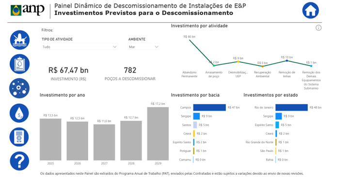 In recent years, several production units have been deactivated and subjected to decommissioning processes. Recent studies indicate that the estimated costs of these activities have increased substantially. ANP forecasts a total of BRL 67.47 billion in investments for the decommissioning of 782 offshore wells between 2025 and 2029 in Brazil.[7].